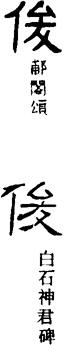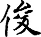 。◇常见人们写俊字时在人、夋之间加一竖(丨),这是沿袭候修等字致误。