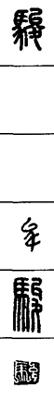 从上到下依次是小篆、甲骨文、金文、古玺及战国文字、缪篆及汉代文字、鸟虫篆。