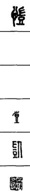 从上到下依次是小篆、甲骨文、金文、古玺及战国文字、缪篆及汉代文字、鸟虫篆。