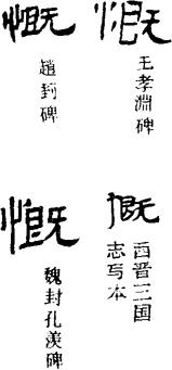 〈辨〉慨字从心,义项①为本义;嘅字从口,义项③为本义。二字都可引申为义项②,因而通用。现一概用慨。