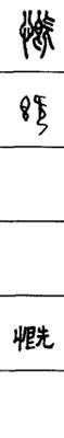 从上到下依次是小篆、甲骨文、金文、古玺及战国文字、缪篆及汉代文字、鸟虫篆。