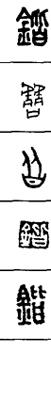 从上到下依次是小篆、甲骨文、金文、古玺及战国文字、缪篆及汉代文字、鸟虫篆。
