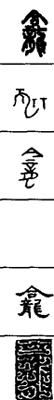 从上到下依次是小篆、甲骨文、金文、古玺及战国文字、缪篆及汉代文字、鸟虫篆。