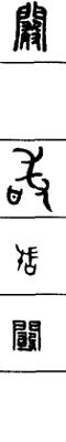 从上到下依次是小篆、甲骨文、金文、古玺及战国文字、缪篆及汉代文字、鸟虫篆。