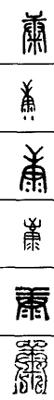 从上到下依次是小篆、甲骨文、金文、古玺及战国文字、缪篆及汉代文字、鸟虫篆。