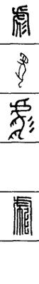 从上到下依次是小篆、甲骨文、金文、古玺及战国文字、缪篆及汉代文字、鸟虫篆。