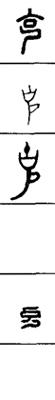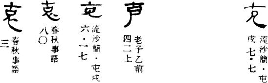 从上到下依次是小篆、甲骨文、金文、古玺及战国文字、缪篆及汉代文字、鸟虫篆。
