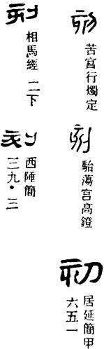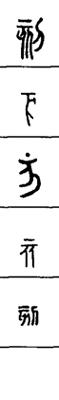 从上到下依次是小篆、甲骨文、金文、古玺及战国文字、缪篆及汉代文字、鸟虫篆。