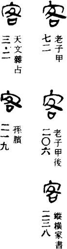 客字的结构为宝盖头下面一个各,宝盖头是房屋的形象,而各则是有人自外而来的意思(“各”兼表声)。所以,客字的本义是指来宾、客人,又指旅居他乡的人。此外,客还特指专门从事某种活动的人,如侠客、剑客、墨客等。