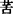 ㈠kǔ ①五味之一。如:苦胆。②苦菜,即荼。《诗·唐风·采苓》:“采苦采苦。”③刻苦;勤劳。如:勤学苦练。①困苦;忧苦;痛苦。如:艰苦;愁眉苦脸;苦日子。⑤竭力;极。如:苦干;苦求。⑥急。《庄子·天道》:“斫轮徐则甘而不固,疾则苦而不入。”⑦麤。《广韵》:“苦,麤也。”