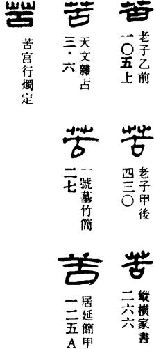 〈辨〉苦从艸,本为草名,即苦菜,又称大苦、苓,其味苦;泛称苦味。