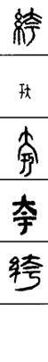 从上到下依次是小篆、甲骨文、金文、古玺及战国文字、缪篆及汉代文字、鸟虫篆。
