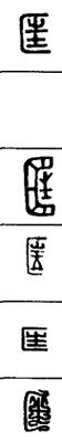 从上到下依次是小篆、甲骨文、金文、古玺及战国文字、缪篆及汉代文字、鸟虫篆。