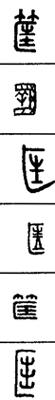 从上到下依次是小篆、甲骨文、金文、古玺及战国文字、缪篆及汉代文字、鸟虫篆。