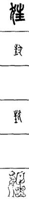从上到下依次是小篆、甲骨文、金文、古玺及战国文字、缪篆及汉代文字、鸟虫篆。