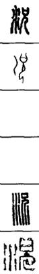 从上到下依次是小篆、甲骨文、金文、古玺及战国文字、缪篆及汉代文字、鸟虫篆。