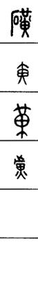 从上到下依次是小篆、甲骨文、金文、古玺及战国文字、缪篆及汉代文字、鸟虫篆。