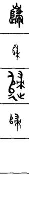 从上到下依次是小篆、甲骨文、金文、古玺及战国文字、缪篆及汉代文字、鸟虫篆。