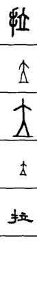 从上到下依次是小篆、甲骨文、金文、古玺及战国文字、缪篆及汉代文字、鸟虫篆。