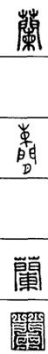 从上到下依次是小篆、甲骨文、金文、古玺及战国文字、缪篆及汉代文字、鸟虫篆。
