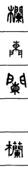 从上到下依次是小篆、甲骨文、金文、古玺及战国文字、缪篆及汉代文字、鸟虫篆。