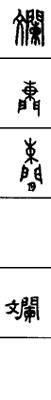 从上到下依次是小篆、甲骨文、金文、古玺及战国文字、缪篆及汉代文字、鸟虫篆。