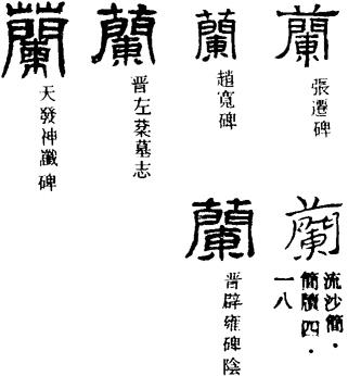 《管子·小匡》:輕罪入蘭盾鞈革二戟。〔尹知章注云:蘭即所謂蘭錡,兵架也。《説文》蘭字,段注云:蘭字當從竹。〕