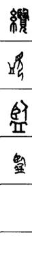 从上到下依次是小篆、甲骨文、金文、古玺及战国文字、缪篆及汉代文字、鸟虫篆。
