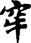 ,7画。①养牲畜的圈△亡羊补牢。②古代祭祀用的牲畜,牛、羊、猪三牲具全称太牢,只用羊、猪称少牢。③监狱
