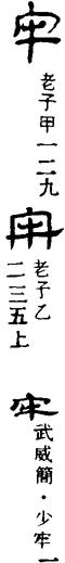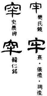 【说明】“牢”为会意字。像牛羊等牲畜关养在栏圈之中。参附录三。