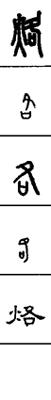 从上到下依次是小篆、甲骨文、金文、古玺及战国文字、缪篆及汉代文字、鸟虫篆。