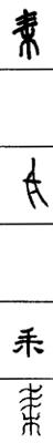 从上到下依次是小篆、甲骨文、金文、古玺及战国文字、缪篆及汉代文字、鸟虫篆。