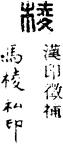 从上到下依次是小篆、甲骨文、金文、古玺及战国文字、缪篆及汉代文字、鸟虫篆。