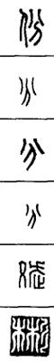 从上到下依次是小篆、甲骨文、金文、古玺及战国文字、缪篆及汉代文字、鸟虫篆。