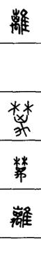 从上到下依次是小篆、甲骨文、金文、古玺及战国文字、缪篆及汉代文字、鸟虫篆。