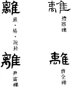 甲骨文的离字,从隹从毕(一种带长柄的网),象以网捕鸟之形,其本义指捕鸟,又用作鸟名。今借用为离别、分散之义。