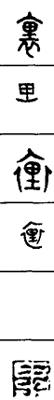 从上到下依次是小篆、甲骨文、金文、古玺及战国文字、缪篆及汉代文字、鸟虫篆。