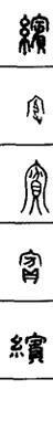 从上到下依次是小篆、甲骨文、金文、古玺及战国文字、缪篆及汉代文字、鸟虫篆。