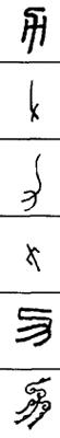 从上到下依次是小篆、甲骨文、金文、古玺及战国文字、缪篆及汉代文字、鸟虫篆。