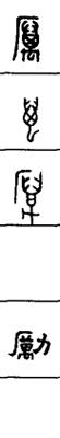从上到下依次是小篆、甲骨文、金文、古玺及战国文字、缪篆及汉代文字、鸟虫篆。