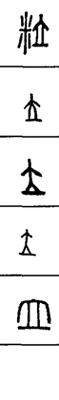 从上到下依次是小篆、甲骨文、金文、古玺及战国文字、缪篆及汉代文字、鸟虫篆。