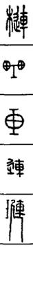 从上到下依次是小篆、甲骨文、金文、古玺及战国文字、缪篆及汉代文字、鸟虫篆。