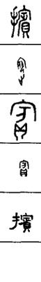 从上到下依次是小篆、甲骨文、金文、古玺及战国文字、缪篆及汉代文字、鸟虫篆。