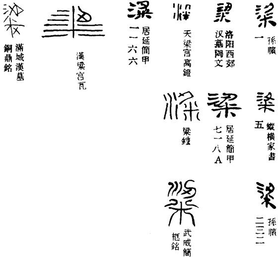馬王堆帛書《戰國縱横家書·蘇秦自趙獻書趙王章》:“奉陽君、徐為不信臣,甚不欲臣之齊也,有(又)不欲臣之韓、粱也。”粱即梁。又帛書《戰國縱横家書·蘇秦自梁獻書於燕王章》:“自粱獻書於燕王曰:……臣將令陳臣、許翦以韓、粱問之齊。”又帛書《戰國縱横家書·須賈説穰侯章》:“臣聞魏氏悉其百縣勝甲以上,以戎〈戍〉大粱。”“大粱”,《戰國策·魏策三》作“大梁”。又銀雀山竹簡《孫臏兵法·擒龐涓》:“請遣輕車西馳粱郊,以怒其氣。”亦以粱為梁,與帛書同。
