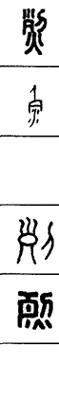从上到下依次是小篆、甲骨文、金文、古玺及战国文字、缪篆及汉代文字、鸟虫篆。