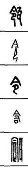 从上到下依次是小篆、甲骨文、金文、古玺及战国文字、缪篆及汉代文字、鸟虫篆。