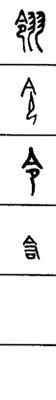 从上到下依次是小篆、甲骨文、金文、古玺及战国文字、缪篆及汉代文字、鸟虫篆。