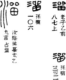 从上到下依次是小篆、甲骨文、金文、古玺及战国文字、缪篆及汉代文字、鸟虫篆。