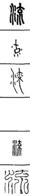从上到下依次是小篆、甲骨文、金文、古玺及战国文字、缪篆及汉代文字、鸟虫篆。