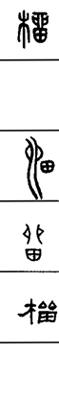 从上到下依次是小篆、甲骨文、金文、古玺及战国文字、缪篆及汉代文字、鸟虫篆。